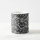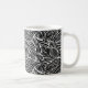 Esta caneca de café cerâmica é mostrada num adorável impressão de palmeiras tropicais. Palmas pretas e brancas Personalize este item ou comprar como está.