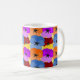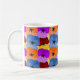 Esta caneca tem um Primavera de design de roxo, azul, laranja e vermelho com as pincéis amarelas colocadas umas sobre as outras num campo de amarelo.