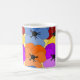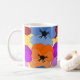 Esta caneca tem um Primavera de design de roxo, azul, laranja e vermelho com as pincéis amarelas colocadas umas sobre as outras num campo de amarelo.