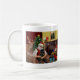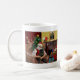 Papais noeis em casa com seu Pug preto, relaxando em frente ao fogo antes da grande noite. Notem Mona Lisa sobre o manto segurando o mesmo cachorro.