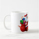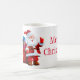 A caneca de café cerâmica é mostrada com Papai noel de arte festiva de Natal, com um texto de Feliz Natal. Personalize este item ou comprar como está.