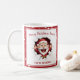 Uma linda caneca de Natal com o engraçado Papai Noel a passar. Fundo vermelho de neve. Personalize facilmente esta caneca de Natal com o seu próprio texto. Kate Eden Art.