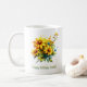 É uma caneca de café com lindas flores amarelas, especialmente projetada para desejar a Amelia um feliz aniversário. Não se trata apenas de tomar café; trata-se das boas vibrações que ele envia ao longo do dia.