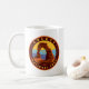 A caneca é de excelente qualidade, de bom peso e aparenta resistentência. O tamanho grande da caneca de 444 ml é muito prático, ela serve até para sobremesas. A alça é do tamanho certo para empunhadura, e oferece grande firmeza. A impressão ficou perfeita, a imagem ficou completamente nítida, e as cores vivas como na imagem do site.
