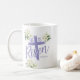 Esta caneca de café de cerâmica é mostrada em uma impressão de Páscoa Ele Ressuscitou.