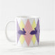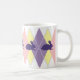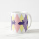 Tome uma Páscoa pré-papoila com um padrão de árgula de rosa, roxo, amarelo e azul com a silhueta de um coelho roxo.
