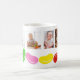 Crie uma caneca de café personalizada única que faça um presente de Páscoa excelente para avós e entes queridos. Esta caneca de café está pronta para ser personalizada com quatro das suas fotos favoritas, acentuadas por uma borda de feijões de gelatina coloridos.