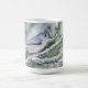 Caneca De Café Pássaro cinza na copa de inverno da neve