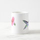 Pássaro de voo do zumbido que alimenta da flor vermelha