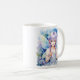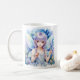 Uma fada bonito com cabelos trançados por lavanda e asas iridescentes segura uma varinha de borboleta, cercada por flores e bolhas.
