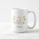 This mug design has a pastel color palette and features a nativity scene with baby Jesus in a manger. In the center in hand drawn text that says "Glory to the Newborn King." You can add your name to the back.