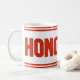 Hong Kong National Flag Patriotic Coffee Mug, com a inscrição deliciosa "Hong Kong", que é infundida com o padrão e as cores da bandeira nacional. O design é acabado com as duas linhas duplas finas em complemento das cores no topo e no fundo do copo. As cores do dentro do copo e da alça do copo estão equilibradas com o resto das cores do copo. As cores da linha podem ser alteradas para qualquer cor do seu gosto pressionando o botão "Editar Design". Aqui está o companheiro fantástico para a xícara de café diária. Design charmoso, cores adoráveis e o aspecto único fazem dele um presente perfeito para qualquer ocasião. © 2023 PaísesDoMundo