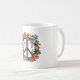 Esta caneca encantadora apresenta um clássico sinal de paz adornada com flores vibrantes e um funcionarios musical fluente com notas que saem elegantemente dela. Perfeito por adicionar um toque de retrato à sua rotina da bebida matinal. Esta caneca é uma obrigação para qualquer um que ama paz, amor e música.