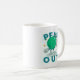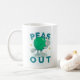 Sip with good vibes using this Peas Out classic mug. Featuring a cheerful green pea flashing a peace sign, this playful pun design adds positivity and smiles to every coffee, tea, or cocoa break.