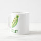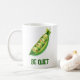 Esta caneca apresenta uma design de ervilhas divertida acompanhada da frase "Ervilhas calem-se,