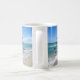 Pegadas no Sand Inspirational dizendo cite poema/história sobre ser transportado pelo Senhor durante tempos difíceis. Linda água azul e cena do oceano de areia branca com pegadas reais caminhando pela costa. Excelente de presente para as mulheres cristãs em Dia de as mães, seu aniversário ou qualquer hora para expressar fé e esperança.