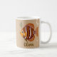 Na moda, caneca de café de peixe tropical personalizada moderna com fundo castanho.
