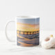 Mug souvenir apresentando ondas rolando em terra durante o amanhecer de ouro por Pensacola Beach Golfo Pier em Pensacola Beach, Florida, Estados Unidos. Procurando mais produtos? Visite minha loja: http://www.zazzle.com/timelessmomentsphtgy Foto tirada por Jennifer White com Fotografia Moments Eterno. Todas as imagens são protegidas por direitos autorais.