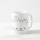 Rashaan soletrou em aminoácidos como R A S H A A N (Arginina Alanine Serina Histidina Alanina Asparagina) numa caneca para o cientista em si. Não consegues encontrar o que queres?