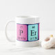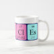 Péricles soletrado como P Er I Cl Es (Phosphorus Erbium Iodine Chlorine Einsteinium) numa caneca para o cientista em si.