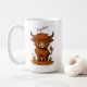 Bring cozy charm to every sip with this personalized Highland cow name mug, designed for animal lovers who adore cute, rustic artwork. Featuring an original flat vector illustration with warm, realistic tones, this mug can be customized with a name to create a thoughtful and memorable keepsake.