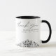 Caneca de café com a silhueta de Memphis presente de agradecimento com texto "obrigado". O design apresenta um esboço deslumbrante com a capacidade de personalizar seus nomes e localização exata. Entre na ferramenta de design da Zazzle para personalizações adicionais.