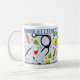 Caneca criativa com tema médico que apresenta suprimentos de saúde. Para personalizar, edite o texto para adicionar o nome do assistente médico.