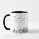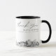 Caneca de café moderna com a silhueta de Salt Lake City, presente de casamento com a inscrição "obrigado". O design apresenta um esboço impressionante com a capacidade de personalizar seus nomes e localização exata. Entre na ferramenta de design da Zazzle para personalizações adicionais.