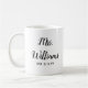 sra. personalizada, comenda de noivado para o casamento da noiva, presente para o presente de noiva, sobrenome de monograma moderno, festa de solteira recém-noiva, caneca recém-noiva, tipografia branca e negra fofa, presente de aniversário da noiva, personalização da sua xícara de caligrafia, roteiro simples de tendências de recem casados