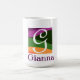 Monograma Moderno - Letra Inicial Mug de Café Verde. Letra G. Comece seu dia com um toque personalizado! Esta elegante caneca de café apresenta uma carta inicial sobre um fundo geométrico mínimo roxo, verde e amarelo. Perfeito como presente para amigos ou família, combina estilo e funcionalidade com um design de monograma chic.