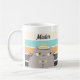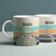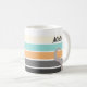 Engraçado, kawaii, fofo, único, caneca vintage com nome, gato retrô e listras coloridas.