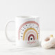 Uma caneca de arco-íris bonita com uma seleção de canecas de tamanho diferente para escolher. Pode alterar o estilo da fonte, a cor para o traje. Você pode adicionar um nome ou citação sob o arco-íris.