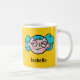 Esta caneca de café Personaliza o seu nome com um Rosto de Cartoon Engraçado em Fundo Amarelo.