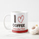 This personalized coffee mug features the phrase “I ♥ Coffee” with bold lettering filled with a stylish coffee bean pattern. Add a custom name to create a unique mug that celebrates your love for coffee.