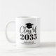This sleek and modern graduation mug gift features a classic graduation cap and tassel at the top, with “Class of” in elegant handwritten script just below, followed by the class year, which can be customized to “Class of 2026” or any year. Beneath the year, the graduate’s name and school are displayed in timeless serif fonts for a polished, balanced look.