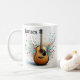 Personalized coffee mug featuring an acoustic guitar artwork.