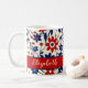 A lovely personalized mom kitchen set featuring a patriotic floral pattern and the heartwarming phrase Home Cook Of The Brave. Customize with mom’s name. Perfect for Mother’s Day gifts, kitchen decor, and patriotic home style, this coffee mug is great for moms who enjoy cooking, baking, and creating special family moments.