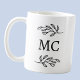 Caneca De Café Personalized Monogram Initials Botanical Leaf Art