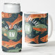 Um polvo ataca um navio enquanto um caranguejo e uma natação de peixes passavam. Tema náutico da safra em fundo azul. A maioria das imagens de vintagem são da Biblioteca do Patrimônio da Biodiversidade. Seu texto no meio. Fazer é um bom presente de Dia de os pais.