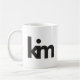 Kim obtem-na possui o copo de café com um design minimalista, tipográfico.