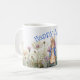 Peter, o coelho com um fundo de flor silvestre e uma saudação de Felz pascoa