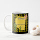 The coffee mug design saying "Phoenix" and "Valley of the Sun" makes it ideal for either coffee or tea in the mornings. It is microwave and dishwasher safe. It is colored black with green, orange, white and yellow ink in it.