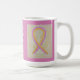 Phyllodes Tumor é um raro cancer da mama. Ele usa uma fita de reconhecimento rosa e dourada para mostrar apoio para sua consciência. Esta caneca personalizada apresenta duas pinturas de arte de anjo da fita de reconhecimento rosa com a mensagem "I Hope and Support Phyllodes Tumor Awarness!" O personalizado comentário cor-de-rosa (guardian angel ribbon art picture cups or mugs) de café pode ser personalizado com mensagens personalizadas para fazer canecas de excelente para angariar fundos de conscientização, doações de café ou outros eventos especiais ou causar ocasiões de suporte. Faça suas próprias palavras personalizadas para uma mensagem pessoal de esperança e apoio para compartilhar!