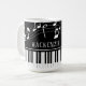 Mug moderno e na moda com teclado de piano e notas de música em preto e branco personalizado com um nome ou texto personalizado em um estilo de fonte editável. Ideal para professores de música, músicos e profissionais de música. ALTERAÇÕES: Você pode alterar a cor preta do plano de fundo ou o estilo, cor, tamanho e posicionamento da fonte de texto clicando em PERSONALIZAR AINDA MAIS para obter uma aparência personalizada ou simplesmente excluir o nome da amostra para deixar esse vazio de área. Entre em contato com o designer ANTES DE PEDIR por meio do Zazzle Chat ou makeitaboutyoustore@gmail.com para obter modificações no design, assistência para personalizar ou transferir o design para outro produto ou gostaria de coordenar itens.