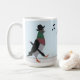 This unusual coffee mug features my cartoon style image of a dapper Pigeon wearing a hat, whistling a merry tune and carrying an umbrella. This pigeon portrait is based on a real life pigeon called Bob, who lives above my balcony. A perfect mug for a pigeon lover. Great to brighten up coffee time. Ideal to team with other matching items.
