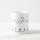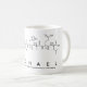 Rachael soletrado em aminoácidos como R A C H A E L (Arginina Alanina Cisteina Histidina Alanina Ácido Glutâmico Leucina) numa caneca para o cientista em si.