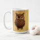 Uma coruja fofa feita de escamas de pínus. Personalize adicionando seu próprio texto no lado oposto.
