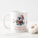 Calma a tua temporada de férias com esta adorável caneca de chocolate quente de Natal. Apresentando um pinguim encantador, e uma aspersão de estrelas, esta design bonitinha traz alegria festiva a cada gole. Personalize-o com qualquer nome e desfrute do design impresso em ambos os lados para uma vista encantadora de qualquer ângulo. Perfeito para picar cacau quente pelo fogo ou dar a um ente querido, esta caneca é um feriado confortável que deve ter. Faça-o realmente seu ou dê a alguém especial um presente de Natal personalizado! Cinzas/laranja