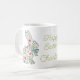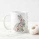 This Easter holiday ceramic mug features adorable spring rabbits of pink and blue wildflowers and leaves. Personalize with your choice of name or special text. Fun for Easter gift baskets and party favors.