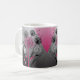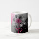 Pink, White and Black dandelion design on a black, silver and pink background coffee mug.
